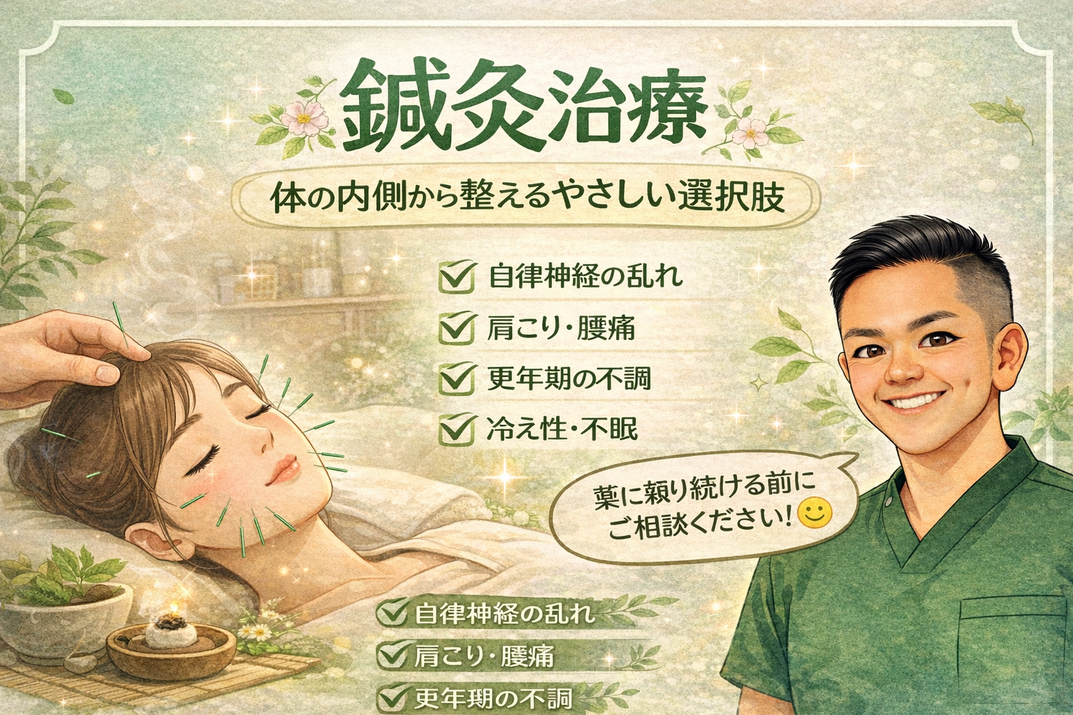鍼(はり)と灸(きゅう)を用いて、